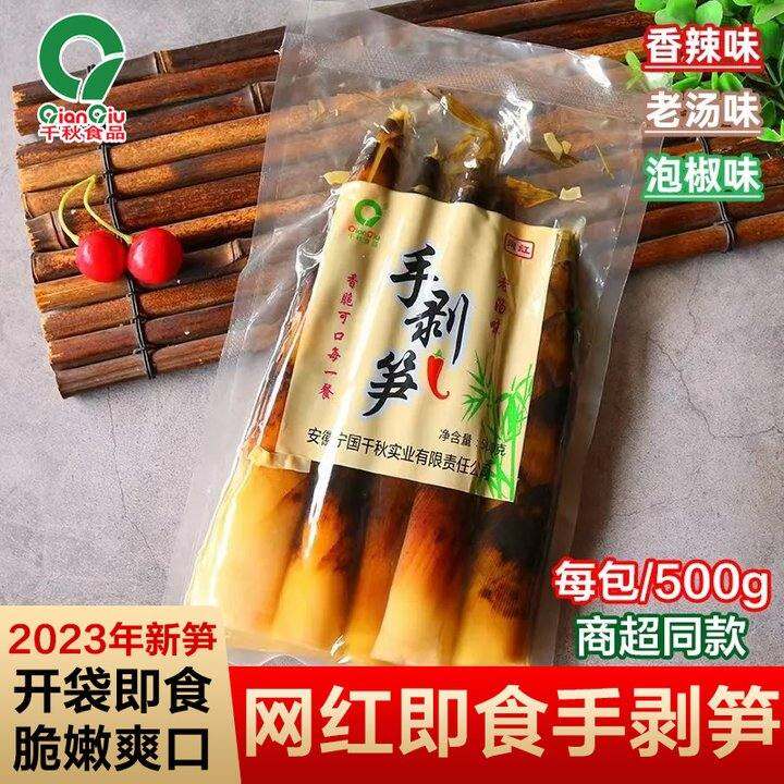 千秋手剥笋开袋即食笋尖泡椒味酸辣手撕笋竹笋零食网红手拨笋500g