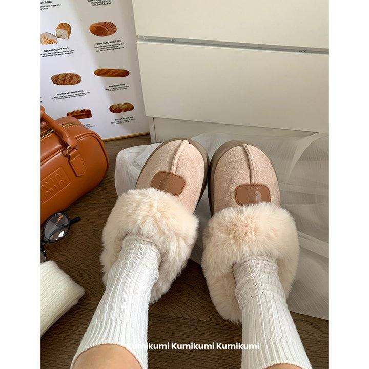 厚底外穿雪地鞋毛绒绒一脚蹬拖鞋女士冬季加厚保暖居家防滑棉拖鞋