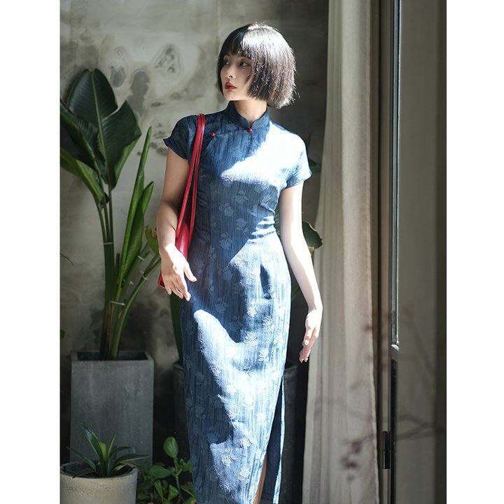 江南絮|一纸情愫|蓝色旗袍新中式改良年轻款日常民国复古小个子