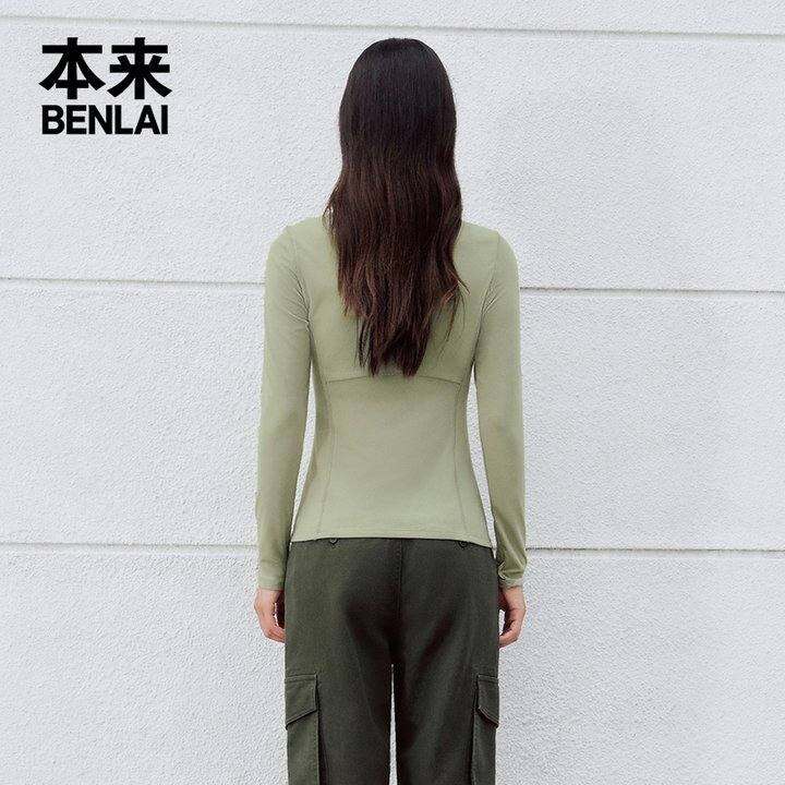 本来BENLAI女士高领针织T恤2024秋冬新款内搭修身打底衫长袖上衣