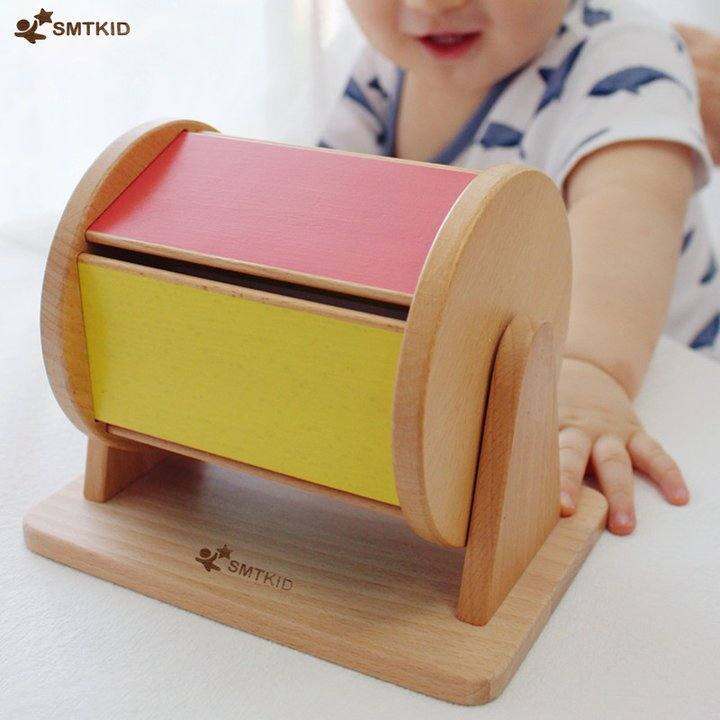 SMTKID蒙氏彩虹纺织鼓幼儿早教全实木益智宝宝手眼协调可啃咬玩具