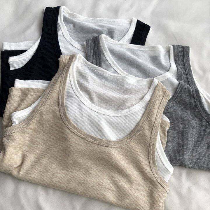 天丝混纺假两件套修身百搭韩系小背心女无袖背心无袖上衣