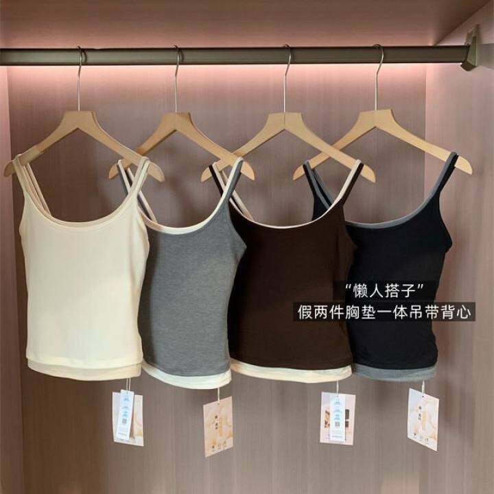 WTHEONE高品质桑蚕丝带胸垫假两件撞色弹力显瘦打底吊带背心春夏