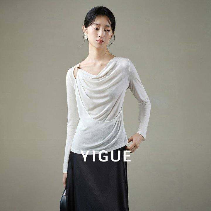 时光画 画布 天丝亦谷超显瘦的垂折领褶皱针织衫2025女秋新款收腰上衣