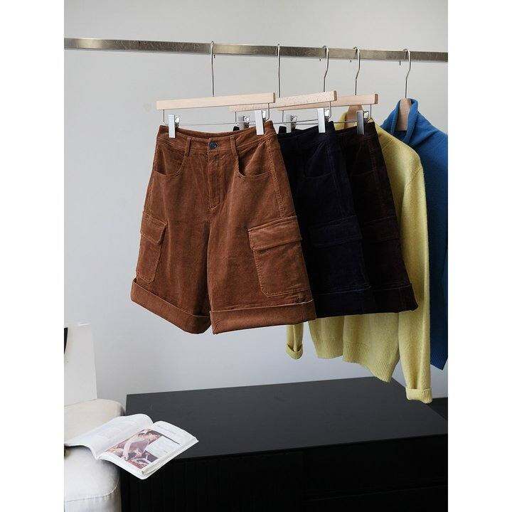 现货告别5折咆哮推荐 洋气!复古棉质灯芯绒工装五分裤女《HYJU587
