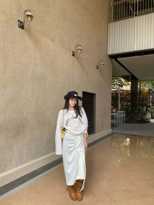 区区欧阳 抽褶波浪半身裙女秋季新款复古卫衣裙不规则中长款裙子