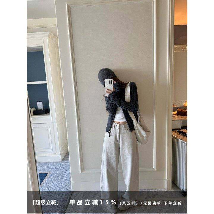 4PRIL 燕麦灰牛仔休闲裤女冬季休闲宽松直筒高显瘦百搭阔腿长裤子