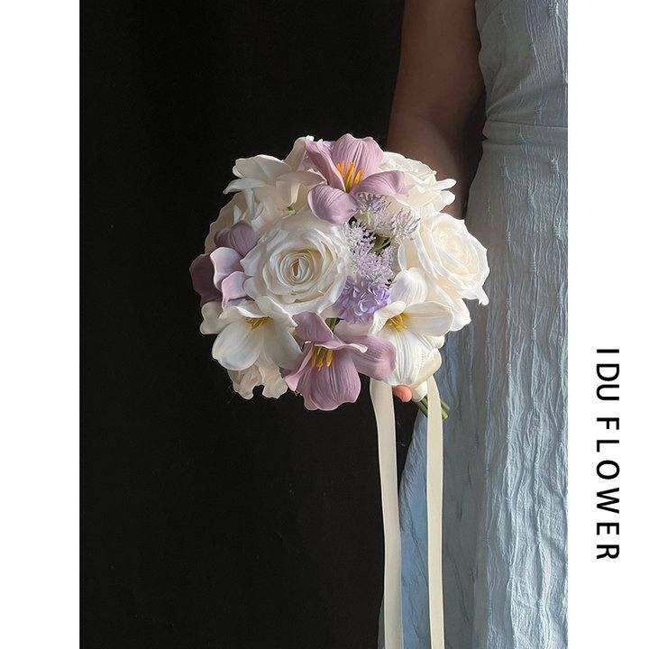 高级感紫色仿真花婚礼新娘手捧花结婚摄影道具领证登记郁金香花束
