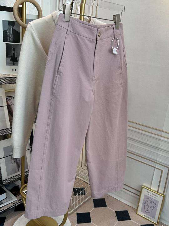 慵懒山本裤女宽松高腰阔腿裤日系简约纯色九分纯棉直筒休闲裤春夏