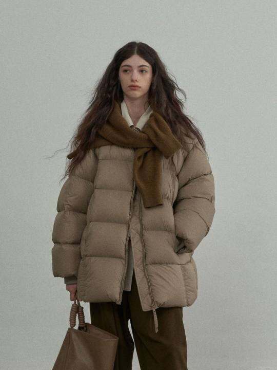 hello September轻薄简约绗格中长款圆领白鸭绒羽绒服外套女M5523