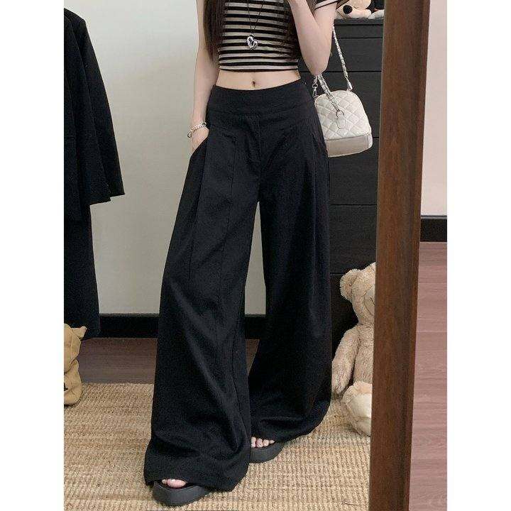 垂感高腰黑色休闲裤女夏季显瘦宽松阔腿裤不贴腿拖地裤卡其色长裤