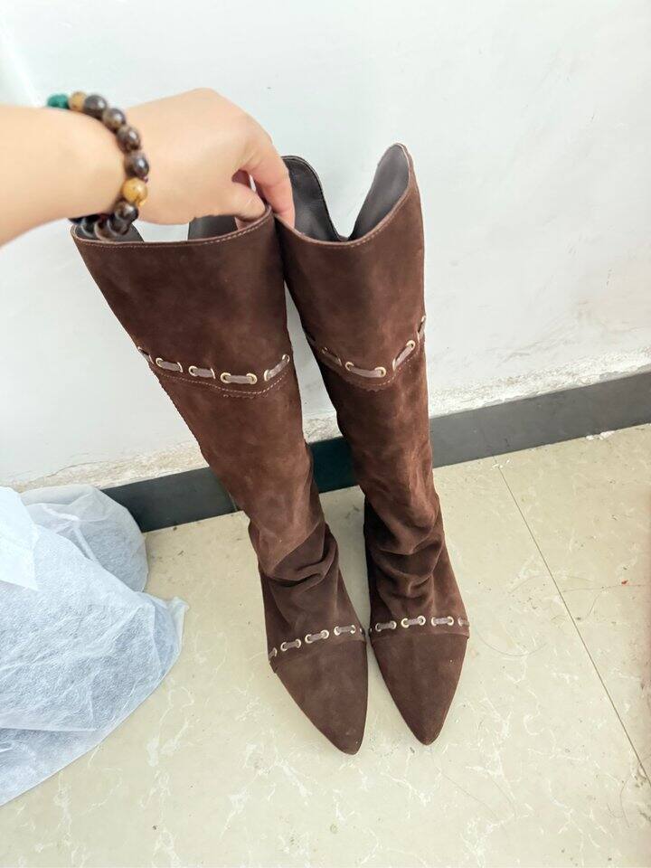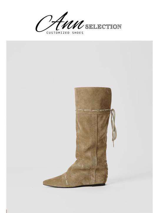 ANN小众设计感尖头堆堆靴女2025秋冬新款平底内增高不过膝西部靴