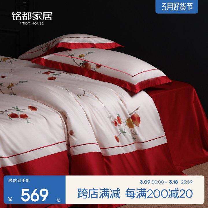 铭都100支新疆长绒棉四件套纯棉婚庆款印花床上四件套-石榴花开