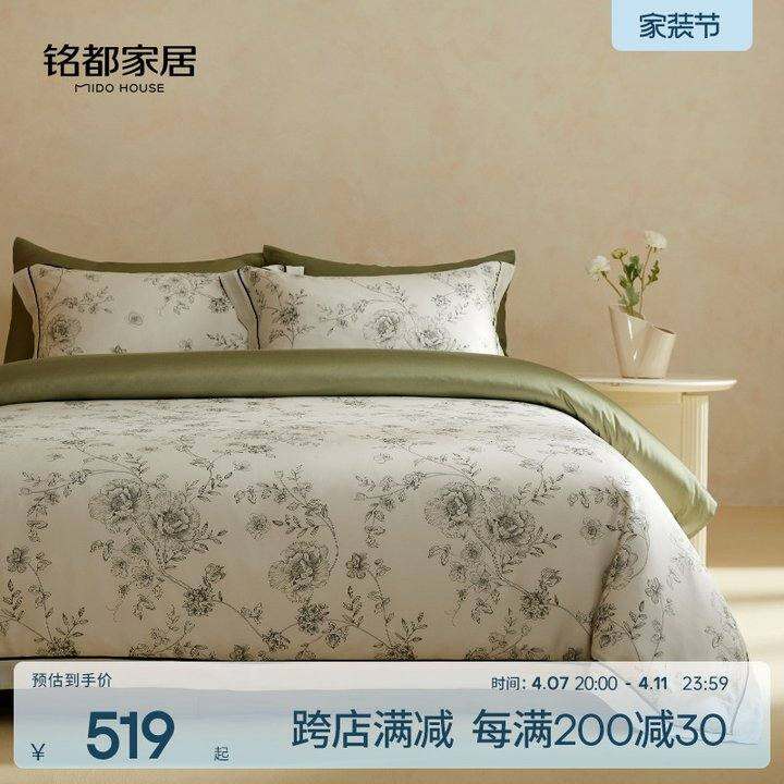铭都床上四件套纯全棉100支长绒棉四季通用印花被套床品套件-知槿