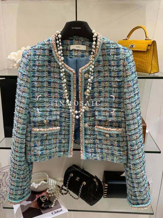 十三行法式高级感定制绿色小香风外套女名媛编织粗花呢圆领上衣