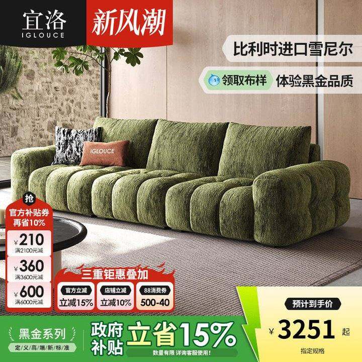 宜洛麦岛沙发法式复古布艺沙发客厅轻奢现代小户型雪尼尔泡芙沙发