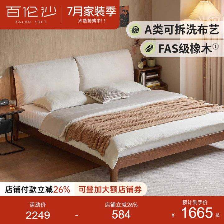 源氏木语百伦沙实木床软靠床主卧1米8大床橡木胡桃色1米5双人床