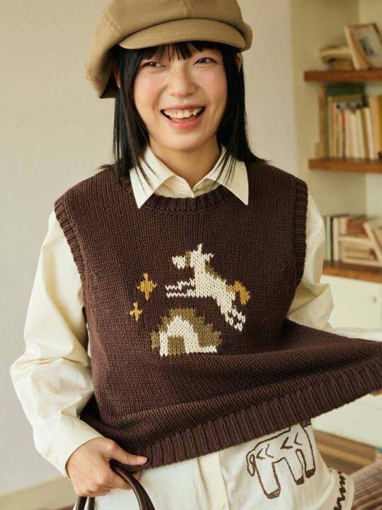 octopusme章鱼家 小马提花 覆古日系毛针织马夹针织背心无袖上衣