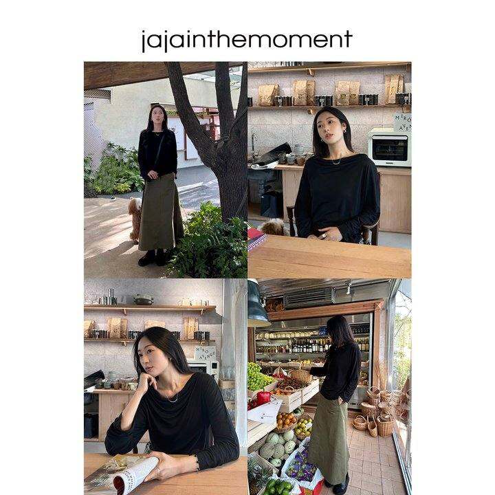 jaja裸感轻薄莱赛尔亚麻堆领凉感长袖防晒纸片人T恤