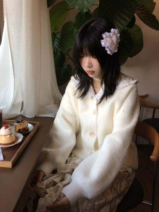 popomelo~原创设计布艺爱心少女花边纽扣充棉发夹
