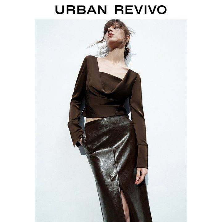 UR2024春季新款女装优雅法式高级感荡领长袖罩衫衬衫UWG240028