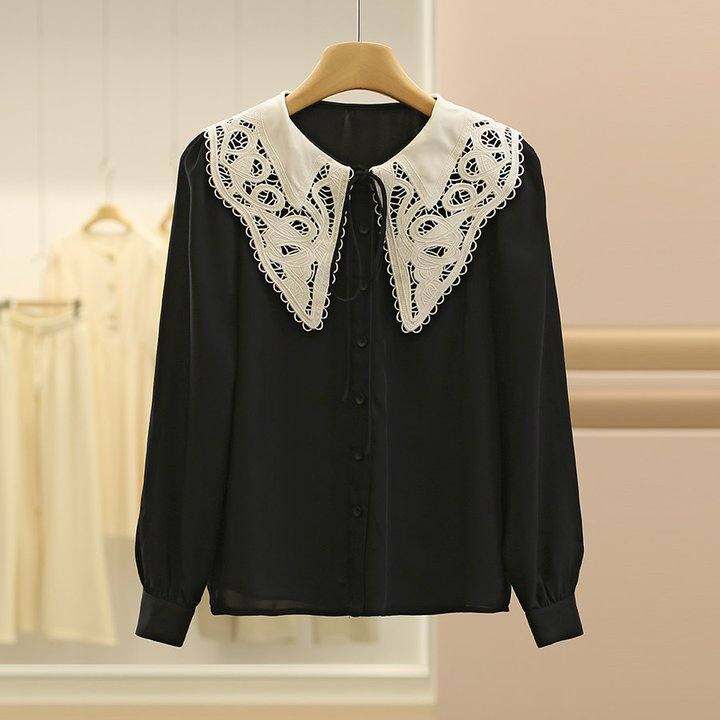 【叁】韩版气质花边娃娃领减龄长袖衬衫007品牌折扣店25秋上衣女