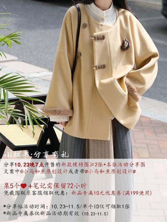 小马和鱼原创-千秋岁 羊毛混纺改良唐垂领松紧破裙通勤秋冬汉服女