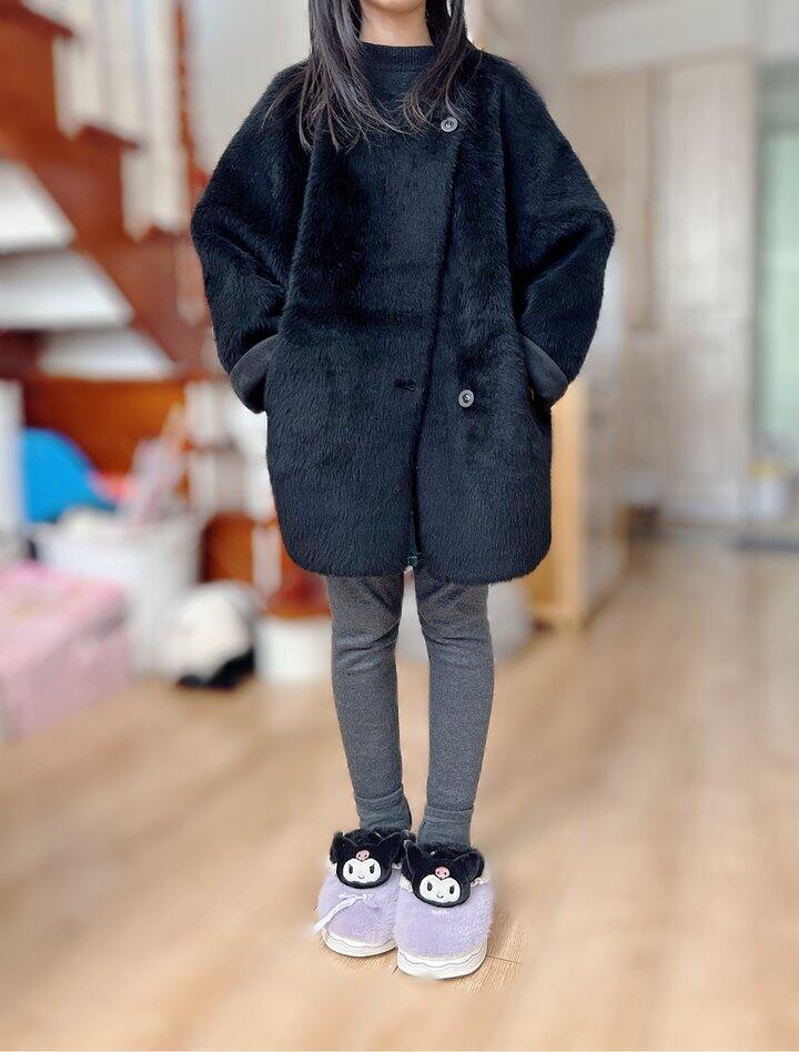 新买的芭莎羊毛外套,女儿替我试穿上身[鬼脸]