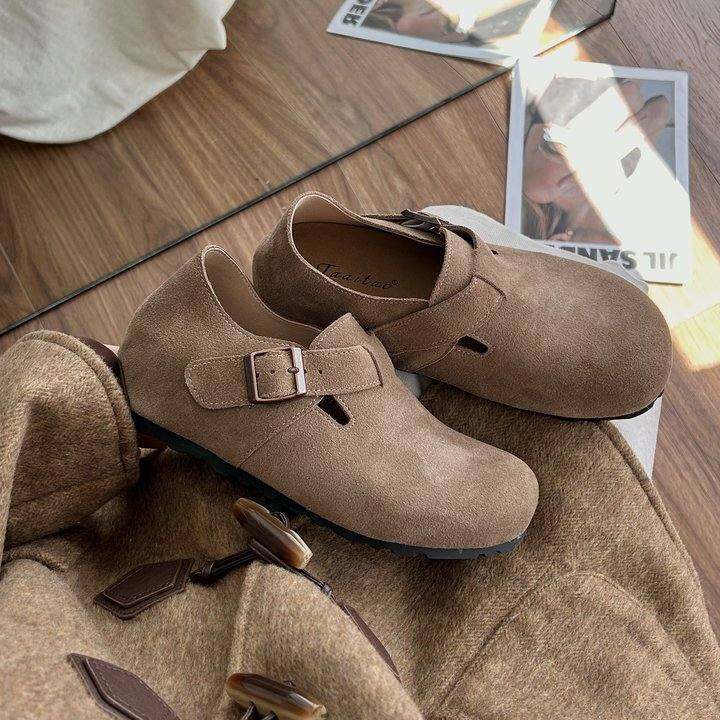 【现货】真皮勃肯鞋2025春季单鞋女全包磨砂牛皮厚底鞋一脚蹬秋季