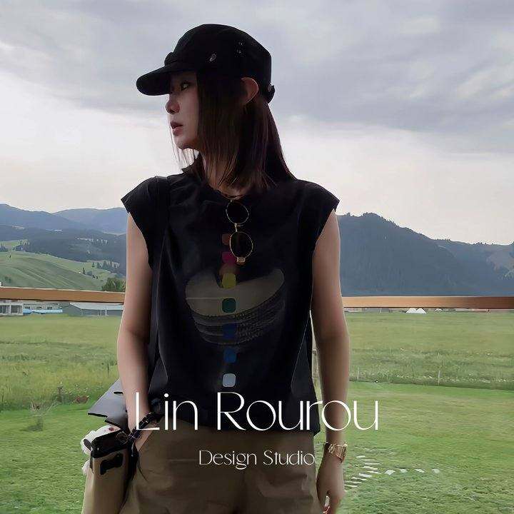 林肉肉【复古艺像彩绘背心】印花圆领套头无袖t恤女夏季宽松上衣