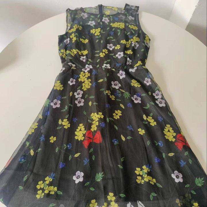 C44【欧美单】15%真丝女士连衣裙夏季新女复古时尚印花无袖中长裙