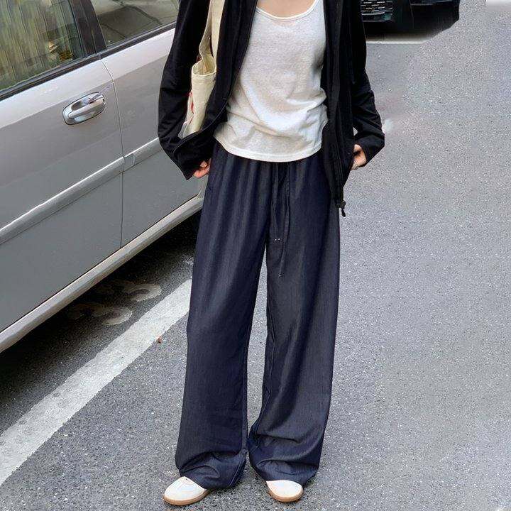 【二两轻】垂感休闲软牛仔裤女高腰阔腿裤夏季透气冰丝显瘦裤子