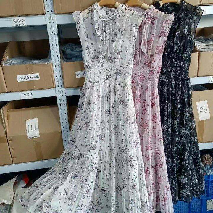 S 荷叶边女士新款碎花连衣裙 百搭甜美吊带无袖长裙