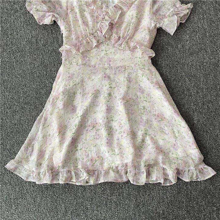 公司单尾货~法式田园风小清新木耳边甜美气质碎花连衣裙A字短裙