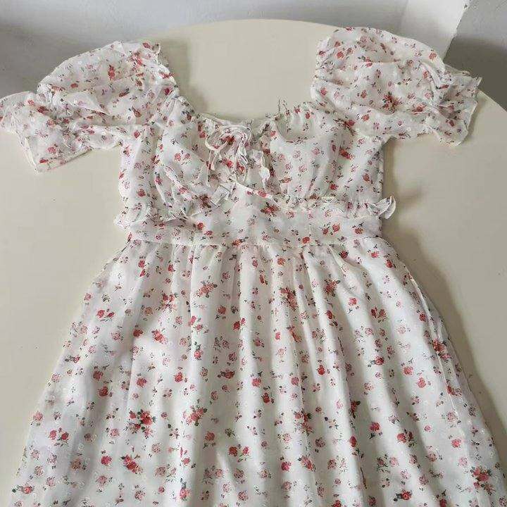 B14【日单】女士连衣裙夏季新款女装文艺气质百搭碎花短袖中长裙