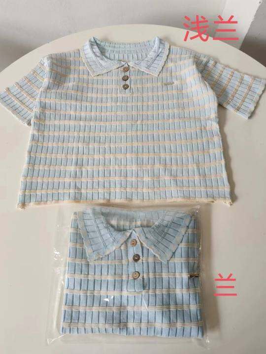 【精品单】夏季新款女士甜美简约风短袖T恤女正肩条纹学院风上衣