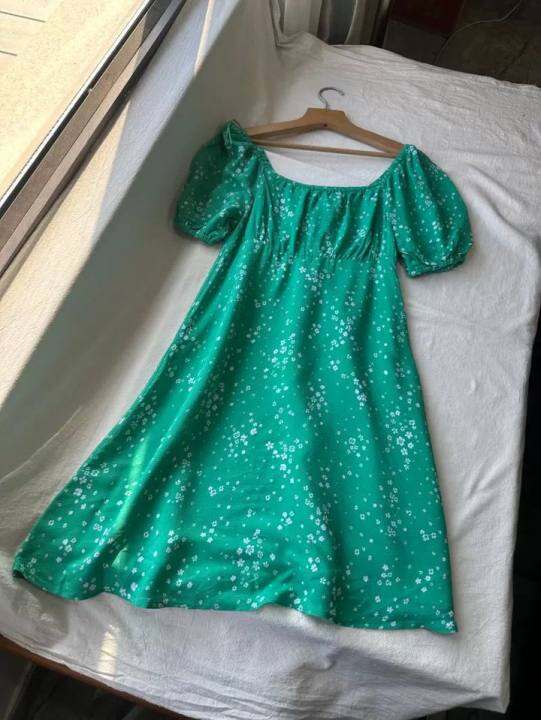 漂亮的绿色裙子,显得胸大腰细。有店主的上身视频,所见即所得。