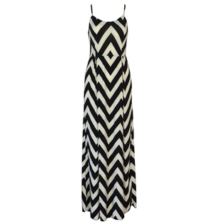 欧美单PARISAN 黑白波浪条纹高开叉吊带连衣裙 长裙4544 处理品