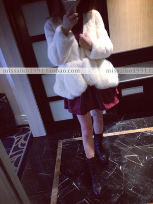MISS AIKO 14新款cc家同款高端定制天然白色水貂V领短款皮草外套