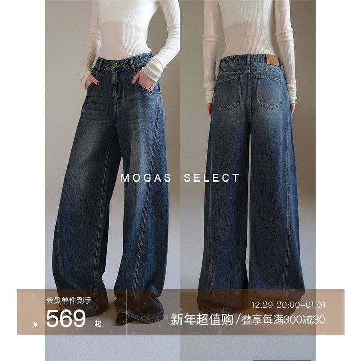 Mogas长青神裤 重工奢牌同款立体分割线拖地裤宽松阔腿牛仔裤女秋