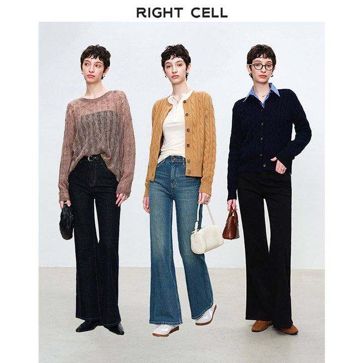 Rightcell 「超模裤」新色灰蓝色直筒微喇牛仔裤女春季新款显瘦