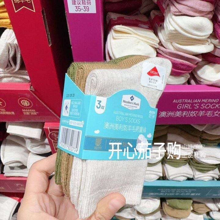 山姆国内代购 MM澳洲美利奴羊毛女童袜子3双装男童袜子