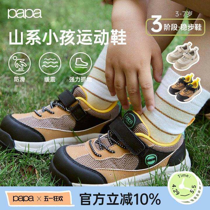 papa爬爬儿童夏季透气网面运动鞋软底防滑耐磨低帮魔术贴女童男童