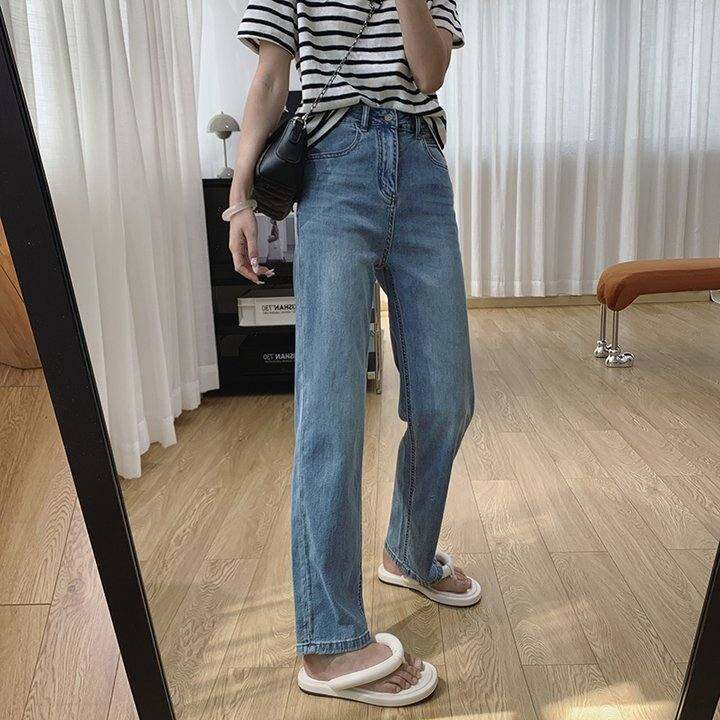 超薄高腰显瘦直筒牛仔裤女夏薄款2025新款裤子小个子窄版阔腿裤