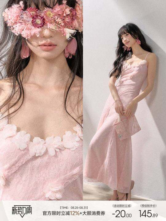 溺水三鱼NSSY海边度假粉色连衣裙女夏小个子七夕约会穿搭吊带长裙
