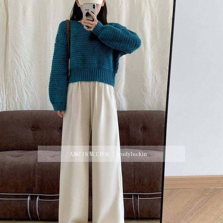 大脑门【冬日温暖山本裤】ju显腿长~秋冬加绒羚羊绒阔腿裤J25172