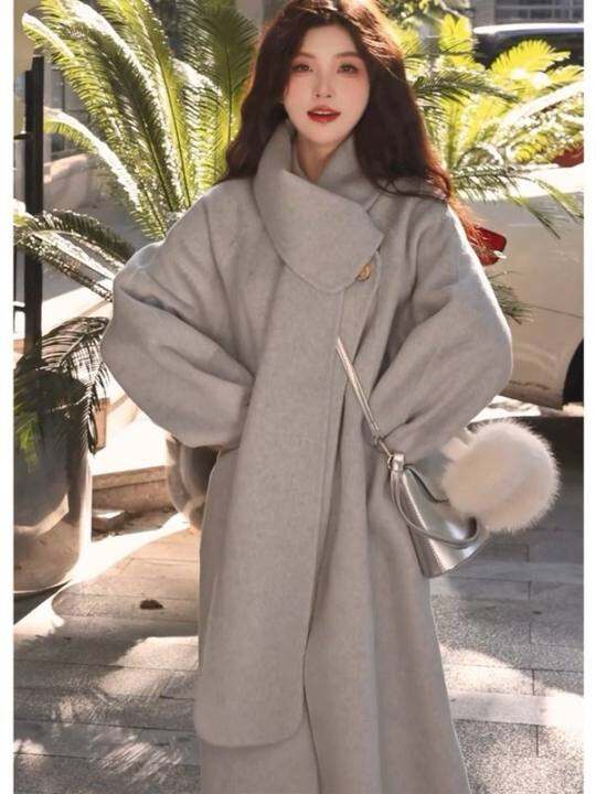 气质韩系灰色呢子大衣女2025秋冬新款毛呢外套小个子赫本风高级感