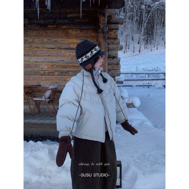 susu褶皱设计感简约百搭短款羽绒服外套90白鸭绒冬季保暖面包服