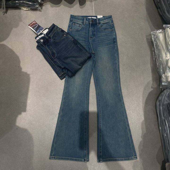 欧货 98126 2024冬季植绒新款高腰显瘦水洗两色微喇裤百搭拖地裤
