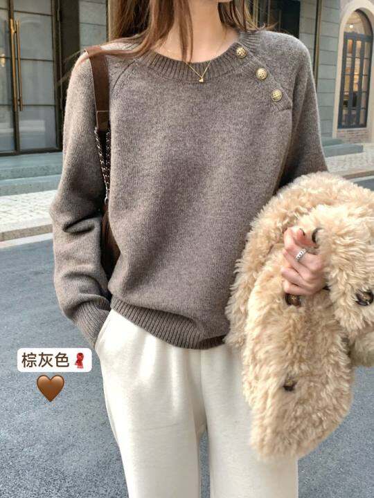 限购1件 !点睛之肩 三粒扣复古肩饰纯色毛衣 简约不乏味